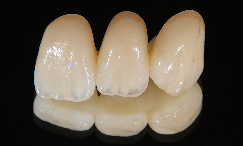 オールセラミックによるブリッジは強度の高いジルコニアを使用し、透過性に優れた素材のため審美性に優れ、見た目が重要になる前歯部の症例に適応しています。